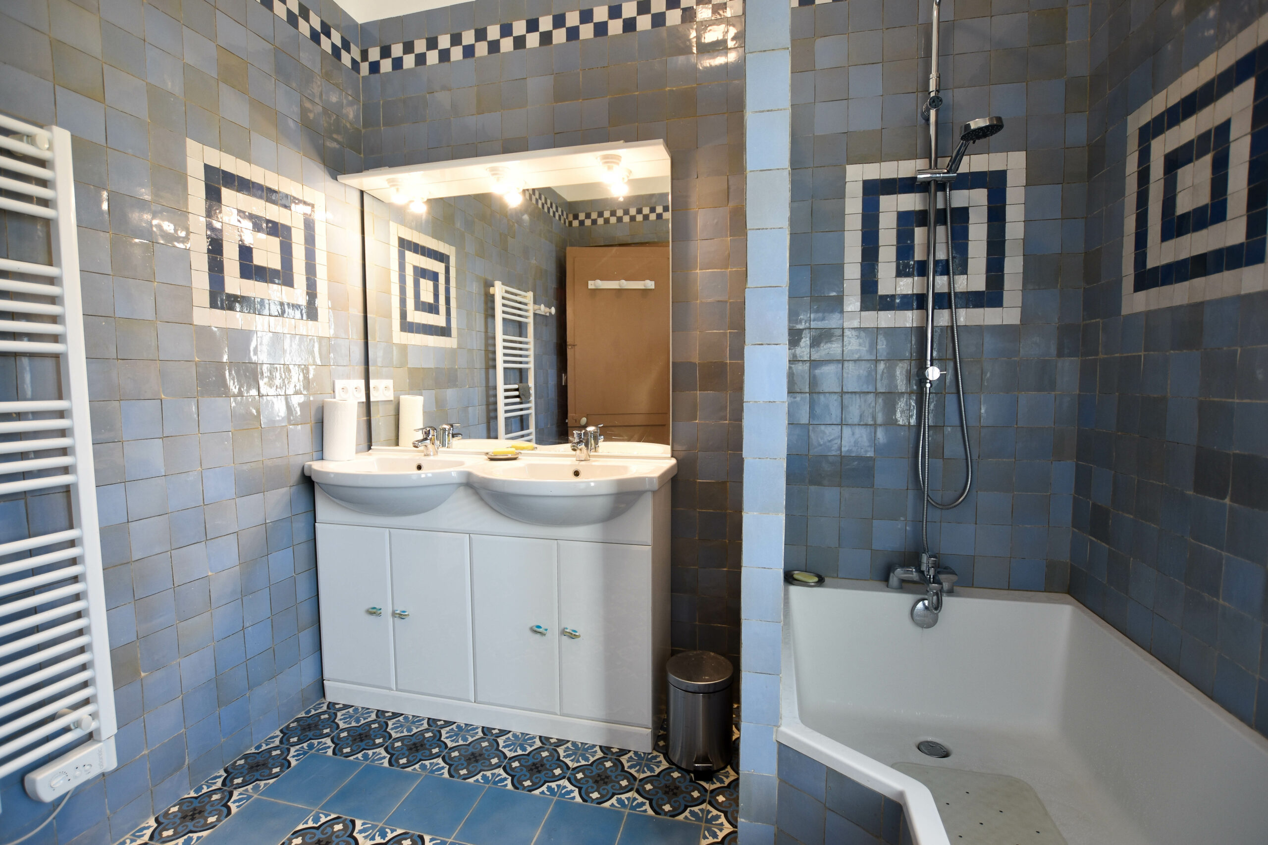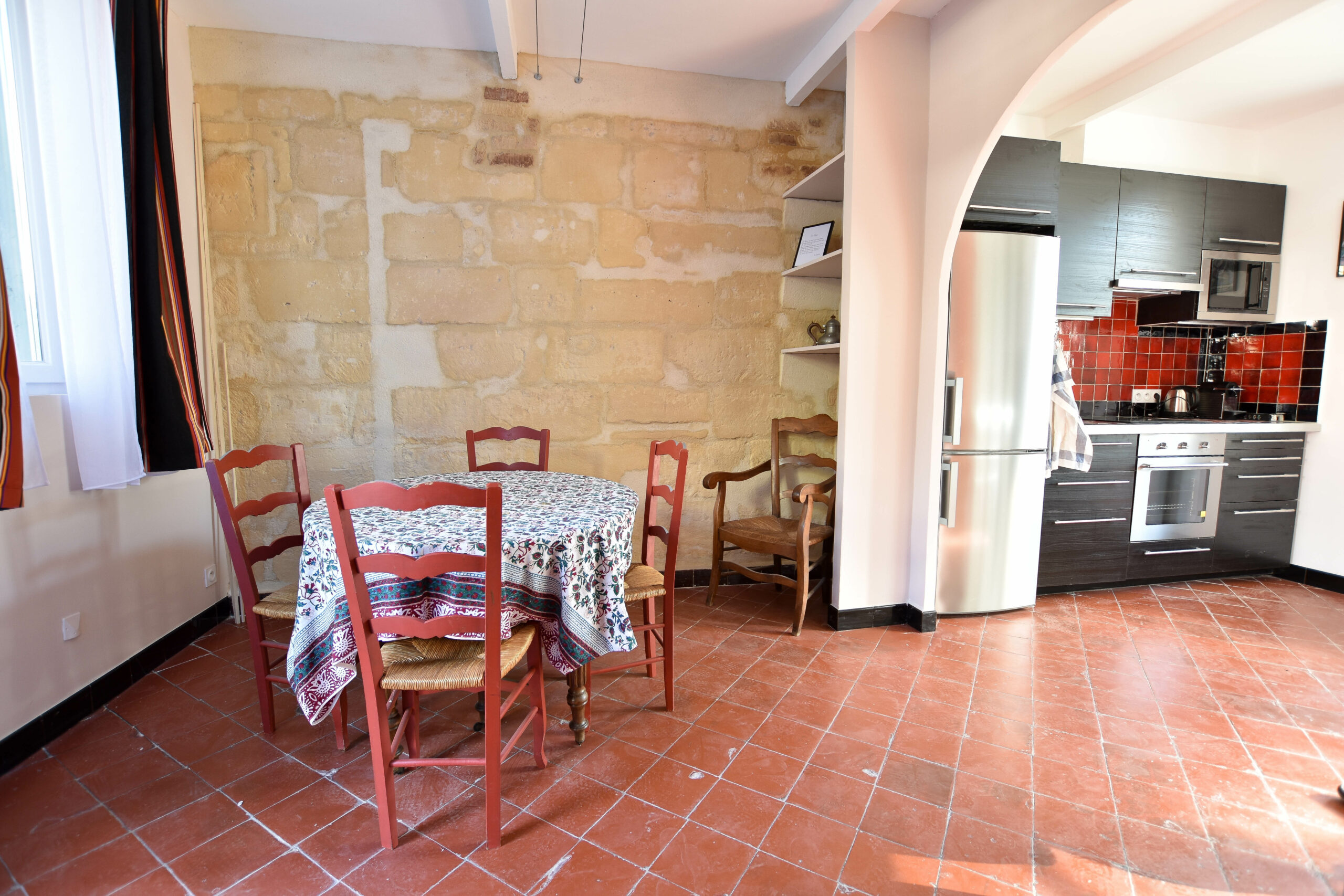 Deux chambres climatisées, une cuisine complète (lave vaisselle, lave linge séchant, cafetière, grand frigo), un salon cosy et un petit extérieur devant la maison pour prendre le petit déjeuner ou plus. Le tout avec une connexion internet Fibre
