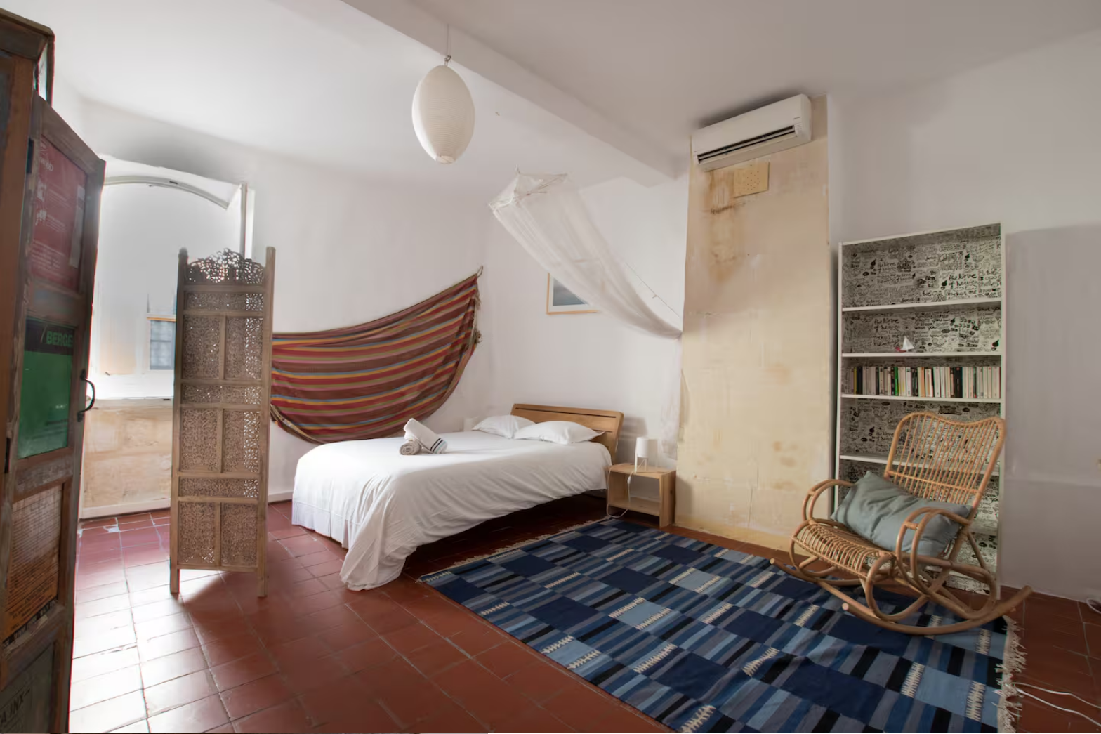 Cette maison avec deux larges chambres climatisées (attention elles sont traversantes: pour accéder au rez de chaussée depuis le premier étage on doit passer par une des chambre)
